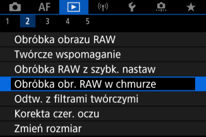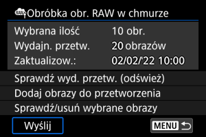 można przesłać do image.canon do przetworzenia na obrazy JPEG lub HEIF. Obrazy RAW pozostaną niezmienione podczas ujęcia, aby możliwe było dopasowanie warunków przetwarzania i stworzenie dowolnej liczby plików JPEG lub HEIF.