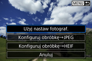 - Korzystając z opcji [Konfiguruj obróbkę→JPEG] lub [Konfiguruj obróbkę→HEIF], wybierz [