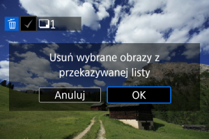 Wybierz [OK] gdy wyświetlony zostanie komunikat o usuwaniu obrazów z listy przesyłania.