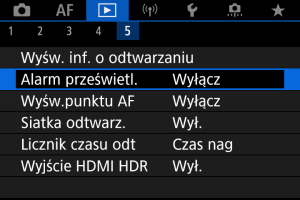 Ustawienia można skonfigurować tak, aby prześwietlone jasne partie obrazów prezentowanych na ekranie odtwarzania filmu migały. Aby uzyskać bardziej szczegółową i wiernie odtworzoną gradację w migających obszarach, wybierz ujemną wartość korekty ekspozycji i zrób zdjęcie ponownie w celu uzyskania lepszego rezultatu.