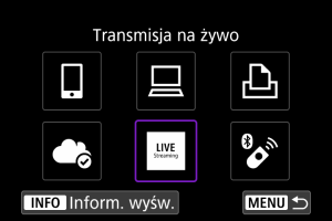 - Wybranie [LIVE] (Na żywo) pozwala natychmiast rozpocząć streaming.