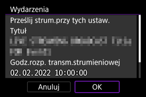 - Po połączeniu z image.canon dodana zostanie ikona [Transmisja na żywo].