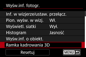 , aby wybrać ekrany informacyjne, które mają zostać wyświetlone na wyświetlaczu aparatu.