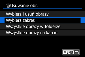 Określenie zakresu obrazów, które mają zostać usunięte
