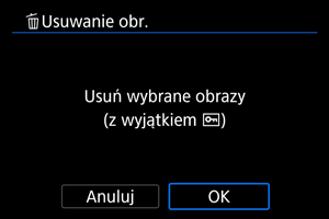 : Usuwanie obr.] wszystkie obrazy w folderze lub na karcie zostaną usunięte.
