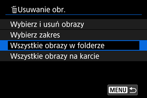 Usuwanie wszystkich obrazów w folderze lub na karcie