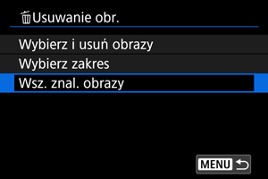- W przypadku wybrania opcji [Wsz. znal. obrazy] wszystkie obrazy przefiltrowane według kryteriów zostaną usunięte.
