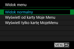 Można wybrać opcję [Widok menu] w celu ustawienia ekranu menu, który ma pojawić się po naciśnięciu przycisku .