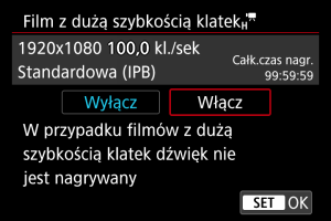 : Wielk.nagr. filmu], jeżeli ustawieniu temu przywrócono wartość [Wyłącz].