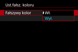 Następujące funkcje nie są dostępne, jeśli aparat ustawiony jest na używanie zafałszowanych kolorów.