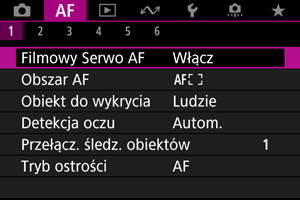 Możesz określić, czy użyć Filmowy Serwo AF, jeśli obiekt ustawiony w [: Obiekt do wykrycia] () nie został wykryty.