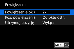 Możesz określić czy zachować tą samą pozycję dla widoku powiększonego lub skorzystać z pozycji ustawionej w [Poz. powiększenia] podczas wyświetlania kolejnych zdjęć.