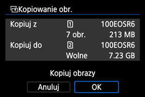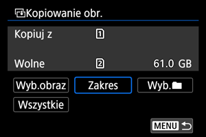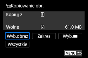 : Kopiowanie obr.] spowoduje skopiowanie wszystkich obrazów znajdujących się w folderze lub na karcie.