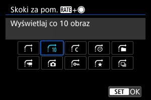 - W przypadku opcji [Przeskocz określoną liczbę obrazów] można użyć pokrętła