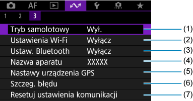 - Skonfigurowanie niektórych pozycji menu nie jest możliwe, gdy aparat jest podłączony do komputerów albo innych urządzeń za pomocą kabla interfejsu.