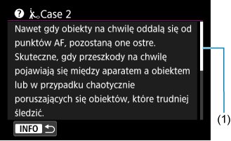 . Naciśnij przycisk ponownie, aby zakończyć wyświetlanie menu Pomoc. Aby przewinąć ekran po wyświetleniu paska przewijania (1) po prawej stronie, obróć pokrętło