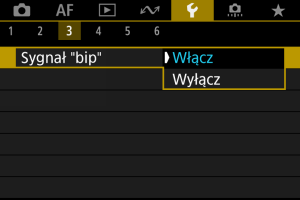 Wyłącza sygnały dźwiękowe dla regulacji ostrości, fotografowania z samowyzwalaczem, migawki i obsługi dotykowej.