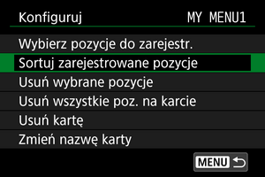 Pozwala usunąć bieżąca kartę Mojego menu. Wybierz [Usuń kartę], aby usunąć kartę [MY MENU*].