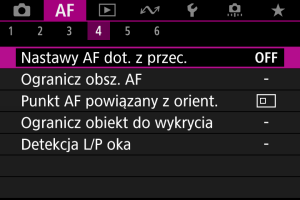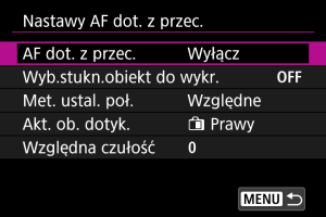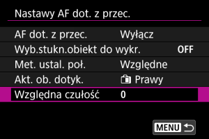 Zwróć uwagę, że ustawienie to nie jest dostępne przy opcji [AF dot. z przec.] ustawionej na [Włącz].