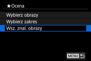 - W przypadku wybrania opcji [Wsz. znal. obrazy] wszystkie obrazy przefiltrowane według kryteriów zostaną ocenione wybraną oceną.