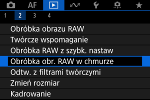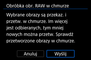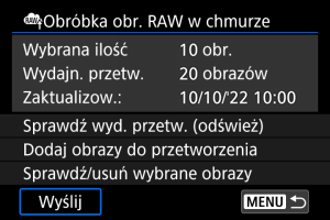 można przesłać do image.canon do przetworzenia na obrazy JPEG lub HEIF. Obrazy RAW pozostaną niezmienione podczas ujęcia, aby możliwe było dopasowanie warunków przetwarzania i stworzenie wielu plików JPEG lub HEIF.