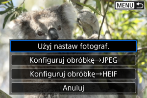 - Korzystając z opcji [Konfiguruj obróbkę→JPEG] lub [Konfiguruj obróbkę→HEIF], wybierz [
