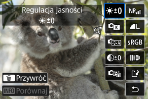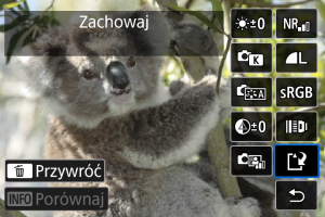 - Aby powrócić do ustawień obrazu w momencie fotografowania, naciśnij przycisk