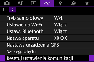• Wszystkie ustawienia komunikacji bezprzewodowej zostaną usunięte po wybraniu opcji [Nastawy komunikacji] dla [Inne nastawy] w [Nastawy: Resetuj aparat].