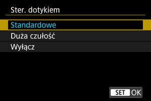 - Opcja [Duża czułość] sprawia, że panel dotykowy jest bardziej czuły niż w przypadku opcji [Standardowe].
