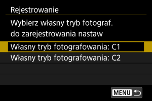 - Wybierz własny tryb fotografowania, który chcesz zapisać, a następnie wybierz [OK] na ekranie [Rejestrowanie].