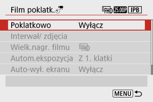- Aby anulować nagrywanie filmów poklatkowych, ustaw opcję [Poklatkowo] na [Wyłącz].