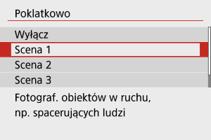 - Wybierz scenę odpowiednią w danych warunkach rejestrowania.