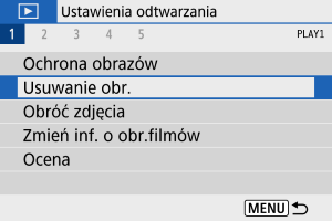 - Usuniętego obrazu nie można odzyskać. Przed usunięciem obrazu należy upewnić się, że jest zbędny. Aby zapobiec przypadkowemu usunięciu ważnych obrazów, należy skorzystać z funkcji ich ochrony.