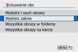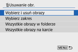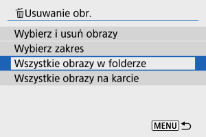 : Usuwanie obr.] wszystkie obrazy w folderze lub na karcie zostaną usunięte.