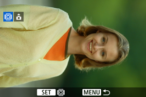 - Patrząc na ikonę orientacji aparatu w lewym górnym rogu, naciśnij przycisk
