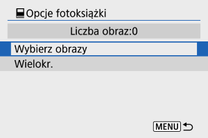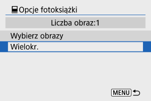 - Wszystkie obrazy w folderze lub na karcie określane są na fotoksiążki, jeśli wybierzesz [Wszystkie obrazy w folderze] lub [Wszystkie obrazy na karcie] w opcji [Wielokr.] dla [