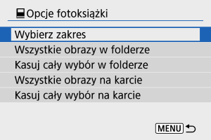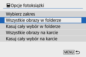 - Aby usunąć zaznaczenie, wybierz [Kasuj cały wybór w folderze] lub [Kasuj cały wybór na karcie].