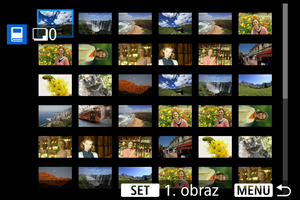 : Ustaw kryteria wyszukiwania] () i wybrał [Wielokr.], na wyświetlaczu pojawi się [Wsz. znal. obrazy] i [Odznacz wsz. znalezione obrazy].
