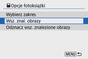- [Odznacz wsz. znalezione obrazy]: Kasuje oznaczenia fotoksiążki dla wszystkich wyszukanych obrazów.