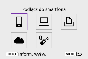 Aparatem można sterować zdalnie i przeglądać na nim obrazy za pośrednictwem połączenia Wi-Fi, korzystając z dedykowanej aplikacji Camera Connect na smartfonach lub tabletach (zwanych łącznie w niniejszej instrukcji „smartfonami”).
