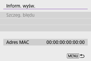 Można sprawdzić szczegóły błędów i adres MAC aparatu.