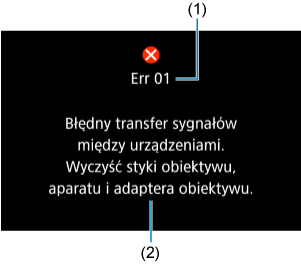 W przypadku wystąpienia problemu związanego z aparatem zostanie wyświetlony komunikat o błędzie. Postępuj zgodnie z instrukcjami wyświetlanymi na ekranie.