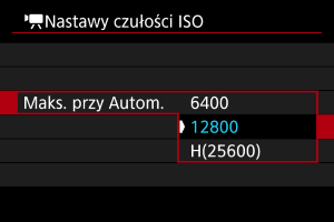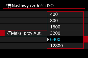 Można określić górny limit dla automatycznej czułości ISO w filmie nagrywanym w trybie [], [