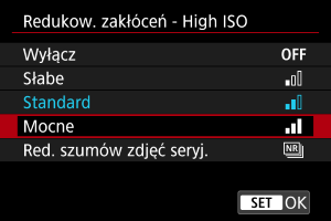 Kamera stosuje wartość redukcji szumów odpowiadającą wybranemu poziomowi.
