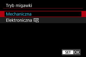 Użytkownik może wybrać metodę zwolnienia migawki.