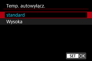 : Temp. autowyłącz.] jest ustawiona na [Wysoka].
