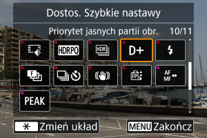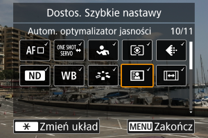 - Elementy pokazane na ekranie szybkich nastaw oznaczone są znacznikiem wyboru.