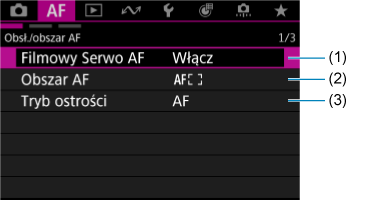 Menu kart: AF (Nagrywanie filmu)