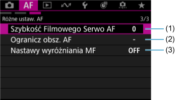 Różne ustaw. AF