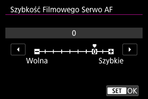 Można ustawić szybkość AF dla funkcji Filmowy Serwo AF.